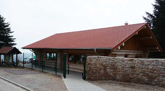 Der neue Eingang liegt direkt neben dem neuen Blockhaus, indem die Gastronomie untergebracht ist.